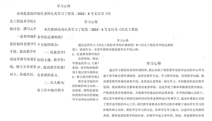 杨静宜主任认为高等教育如同企业一样,质量是企业的生命,质量的控制与质量的改进是企业的原动力。教学质量是高等教育发展的核心,是高校教育的生命线。提高教学质量是高等学校永恒不变的主题。而科学规范的教学管理和健全的质量监控体系是提高教学质量的重要保证。赵莉娅老师提出通过这次学习,激励我们以后要努力提高自己的教学水平。多向其他人学习优秀的教学手段和教学方法。自己要不断学习新的教学理念和策略。周安敉老师发言:我认为此制度的制订有其必要性。我也是巡课的一员,在巡课的过程的确是发现了一些问题。尤其是由于疫情的原因,学校处于封闭管理中,目前是线上线下混合教学的现状,有些学生在线上课堂中比较懈怠,通过巡课可以及时发现问题、处理问题。梁月肖老师提出:我觉得教学质量要落实到细处和实处,听课要有听课的收获,巡课要有巡课的效果,不能为了应付差事敷衍了事。