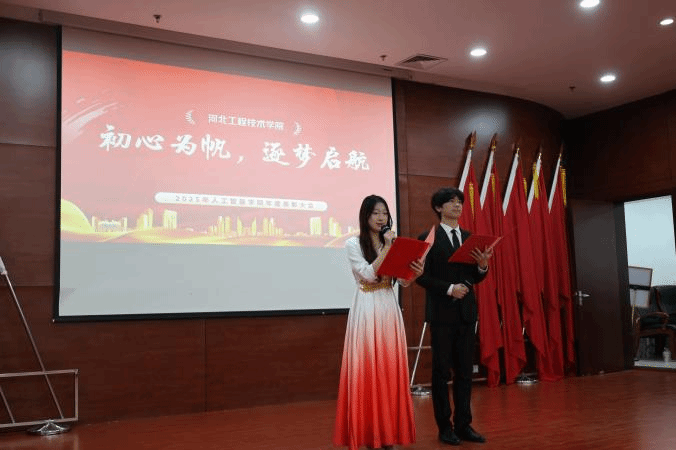 大会第一项,全体起立,奏唱国歌。第二项,由院长王静红致开场辞。她回顾了过去一年学院在学术科研、教育教学、校园文化建设等方面取得的显著成绩,特别表彰了表现突出的先进个人与集体,肯定其用智慧与汗水为学院赢得荣誉,同时勉励大家戒骄戒躁、持续超越,号召全体师生以榜样为标杆,树立远志、勤学进取。她强调,前路虽有挑战,但将成为砥砺奋进的动力,未来学院将持续锚定党建引领核心,聚焦教学科研提质、产教融合深化与学风文化培育等重点,寄语广大师生保持昂扬进取姿态,凝心聚力、笃行实干,共同谱写学院高质量发展新篇章。