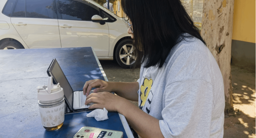 辅导员杨思宇老师利用乒乓球台作为临时办公地点