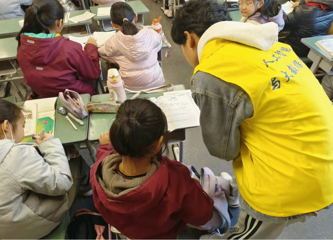 人工智能与大数据学院青年志愿者协会组织学生于2023年12月1日在宫尹小学开展“三点半公益课堂”志愿服务活动第二十期。