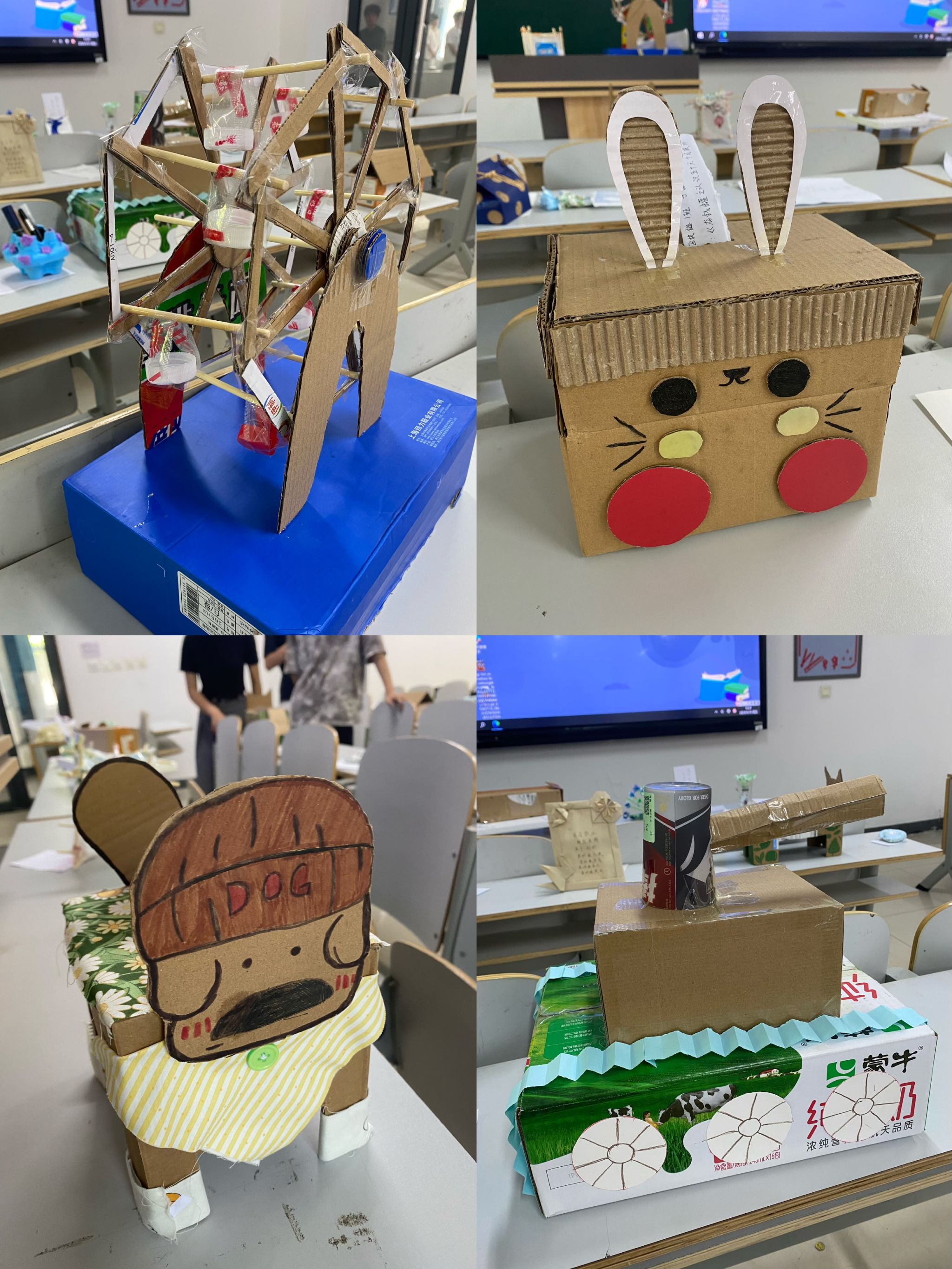 自5月13日开展活动以来,学生们积极参与,收集身边的废弃物,如废纸、废塑料、废布料等,并开始着手设计和制作。在制作过程中,他们充分发挥自己的创造力,用自己的双手完成了一件件绚丽多彩,创意丰富的手工作品。毫不起眼的快递纸盒、平平无奇的A4纸、废旧的矿泉水瓶......在经过同学们的精心裁制、组合、粘贴,变成了一座摩天轮、一个收纳盒、一只小动物等创意作品,惟妙惟肖,形象逼真,充分体现了学生的环保意识和创新能力。
