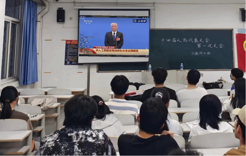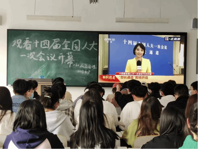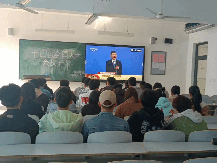 3月5日(星期日)上午9时,第十四届全国人民代表大会第一次会议在人民大会堂举行开幕会。十四届全国人大一次会议5日上午9时在人民大会堂开幕,听取国务院总理李克强关于政府工作的报告。下午,各代表团举行全体会议,审议政府工作报告。5日上午,出席全国政协十四届一次会议的全国政协委员列席十四届全国人大一次会议开幕会,听取政府工作报告。人工智能与大数据学院组织团学干部观看此次直播。