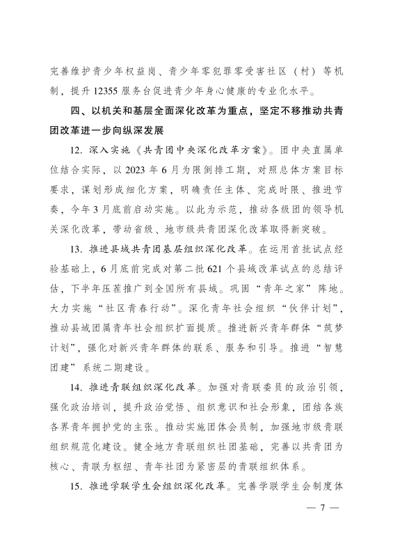 共青团中央关于印发 《共青团中央 2022 年工作要点》 的通知