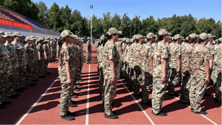 夏日燥热的风拂过肆意的原野,聒噪的蝉鸣伴着骄阳的热浪一波接一波愈发激烈,少年人挺拔的身影在没有一丝云彩的清澈蓝宝石的映衬下,满截着青春的朝气和新鲜的热血。一颗颗冉冉升起的新星身着迷彩板正端庄,像蓬勃生机的青松扎根在红白相间的塑胶跑道,怀揣着对未来生活的希冀,用坚定的意志凝成锐利的长剑劈开眼前的迷雾,无所畏惧,勇往直前。