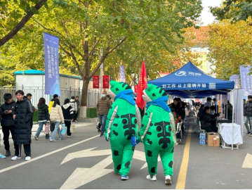 上午9时许,招聘会现场汇集了各招聘企业与众多求职者,学子们纷纷穿梭于各个展位前寻找自己心仪的岗位,更有“青蛙王子”为学子们指引方向。企业HR耐心回答求职者提出的问题,并根据他们的学历、工作经验、专业等情况推荐适合的岗位。