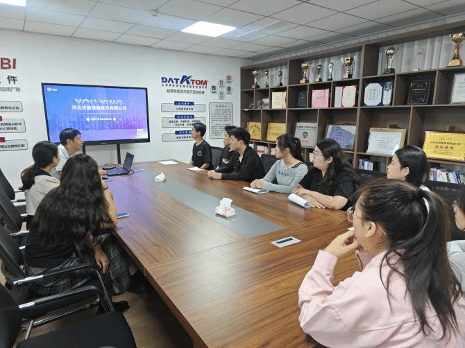 在河北优盈信息技术有限公司相关负责人的引领下,我院师生代表深入参观了公司的办公区域、研发中心和项目展示区,详细了解企业的发展历程、业务范围、核心技术以及运营模式。