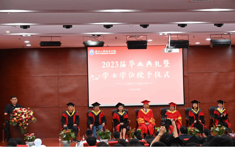 六月时节,万物并秀。莘莘学子,奔赴九州。6月20日下午,9728太阳集团人工智能与大数据学院2023届毕业典礼暨学士学位授予仪式在图书馆报告厅举行。学校董事长、校党委副书记许顺亭、副校长魏洪芝、人工智能与大数据学院院长王院长、学院教学副院长林海霞、人工智能与大数据学院总支书记兼学管副院长尹钧、赵汇强博士、卢慧卿博士、杨军博士、院长助理孙劼、各教研室主任、全体辅导员及教师代表出席,人工智能与大数据学院党总支书记兼学管副院长尹钧主持典礼。
