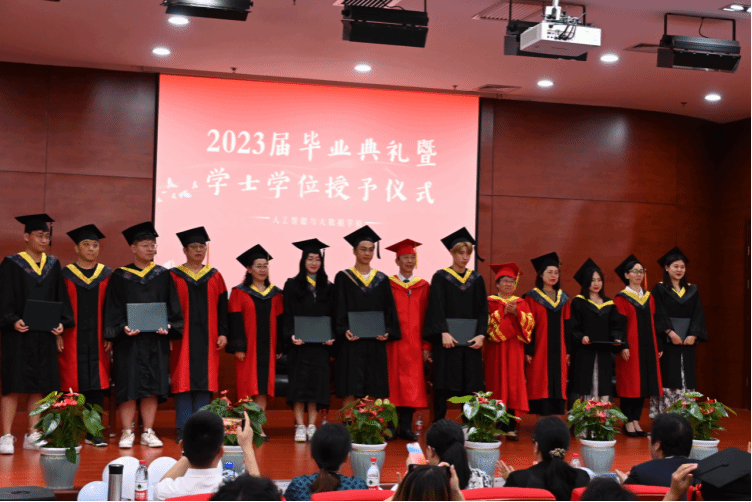 骊歌随起梦蝶振翅,拨穗正冠扬帆远航。愿毕业生们乘风破浪,努力前行,保持“反思”,敢于“亮剑”,在实现中华民族伟大复兴的赛道上奋力拼搏。最后,人工智能与大数据学院想对所有的毕业生们说一声祝贺!相信你们会在未来的道路上取得更加辉煌的成就!