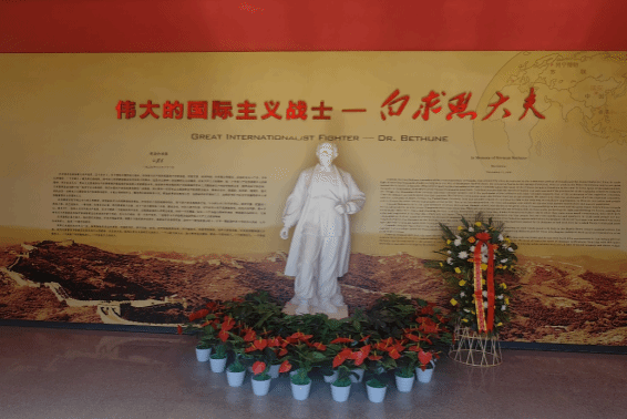 纪念馆中讲解员动情地讲述着白求恩和柯棣华两位国际共产主义战士的光辉事迹,两位伟大的战士将自己的生命毫无保留地奉献给了中国人民和世界人民伟大的反法西斯战争,相继长眠于我们脚下的土地。从纪念馆中走出,绿树成荫蝉鸣聒噪,鲜红的党旗飘扬在烈日下的热风中,此时此刻,我仿佛看见80年前的八路军中党员战士们挺起的胸膛。我们在同样的热风中,同一个广场上,同一面红旗下,然而与我不同的是,他们随后就冲上战场将热血倾洒,与青山同在。