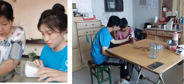 队员们携带电子血压计,走进老人家中,帮助老人测量血压。通过测量血压,可以帮助老人及时调整生活方式、饮食习惯以及必要的药物治疗,有助于预防并控制慢性疾病的发展。此外,这种志愿活动也可以增加老年人对健康的关注,提高他们对自身健康的认知,并促进健康生活方式的养成。在本次活动中,队员们将尊老助老践行到日常生活中,奏响了关爱老年人群体的社会主旋律。