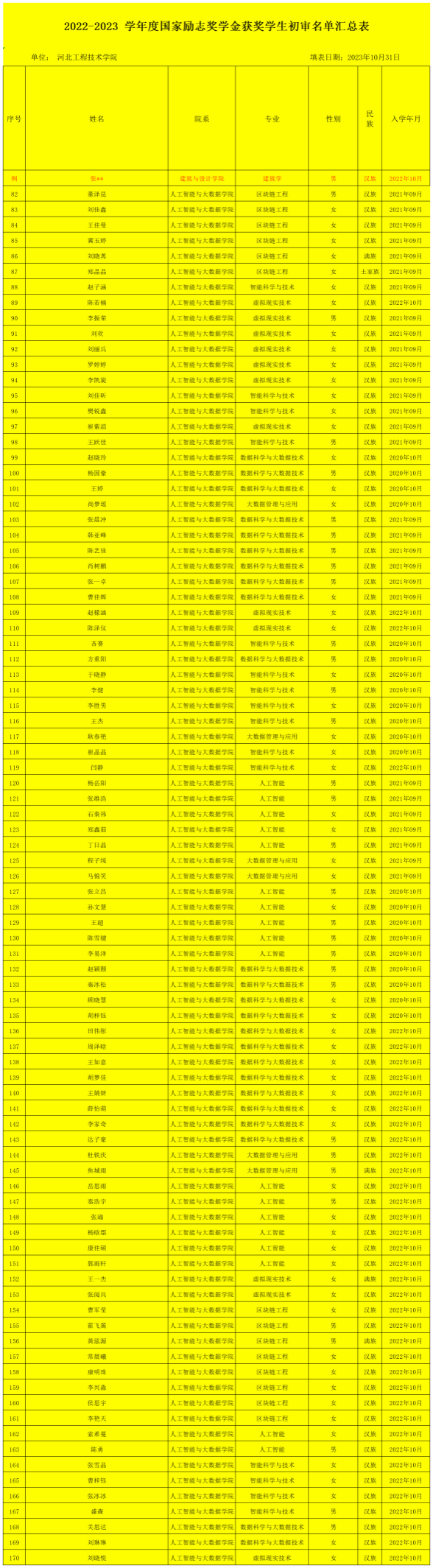 根据《河北省教育厅、河北省财政厅关于印发〈关于印发河北省普通本科高校、高等职业院校国家励志奖学金、国家助学金实施细则以及学生勤工助学管理办法〉的通知》,经评审,我院共89名学生获得2022-2023学年国家励志奖学金。现将获奖名单予以公布。