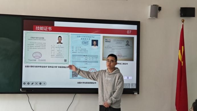 经个人申请以及班级内部推选,共产生19位候选学生参与此次评选。首先由杨家腾老师讲解了本次会议的流程,并介绍了与会人员。随后,每位评选的学生按照评选顺序有序开展演讲,每位进行演讲的同学们都慷慨激昂的讲述着自己在校期间做出的成绩,成就,成果。他们不仅拥有优异的专业能力,还在思想品德、综合素质、艺术特长等多方面展现出了卓越的风采。无论是在学业上还是生活中,都展现出了非凡的表现,面对挑战他们都能坚定不移地前行,给人以无限的激励。