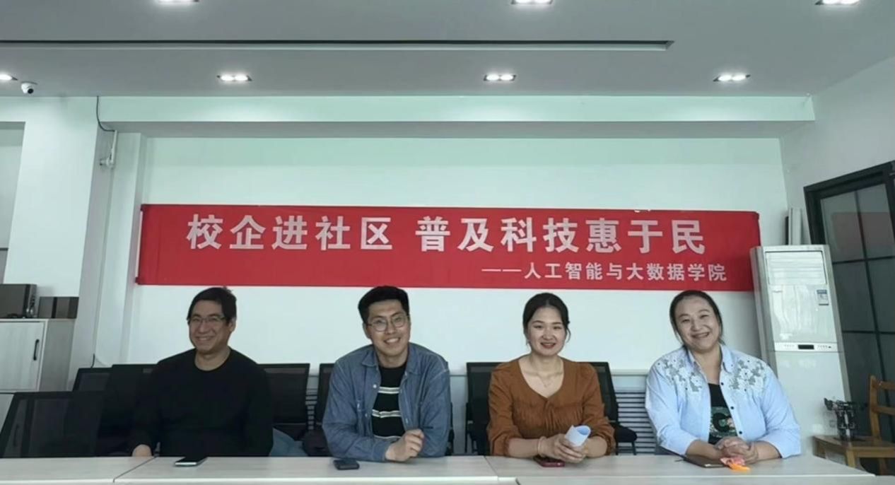 人工智能与大数据学院于2024年5月8日在桥西区南小街社区居委会开展了“校企携手进社区,普及科技惠于民”的主题宣讲活动。此次活动由人工智能与大数据学院副院长孙劼,学管办主任杨家腾带领,宣讲人员有百度卢宇,清博教育牛平,科大讯飞刘彤彤等企业老师。氛围良好,活动达到预期效果。