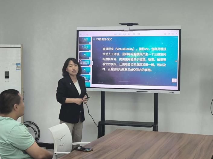 作为压轴环节,清博教育的牛平老师向居民们深入介绍了虚拟现实(VR) 技术的应用。他从(VR)技术的基本概念出发,详细阐述了(VR)技术的系统组成。为了让居民们更直观地体验(VR)技术的魅力,牛平老师现场进行了设备的调试,并邀请社区的工作人员亲身体验这一创新技术。通过这种互动式的展示,居民们更加深入的 了解了(VR)技术的便捷性和实用性。
