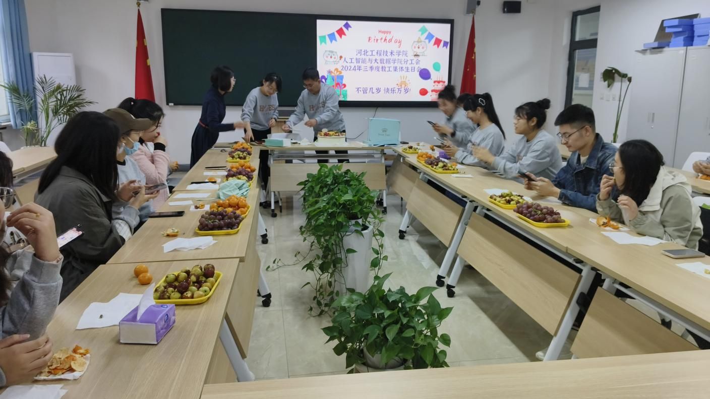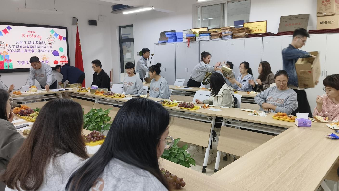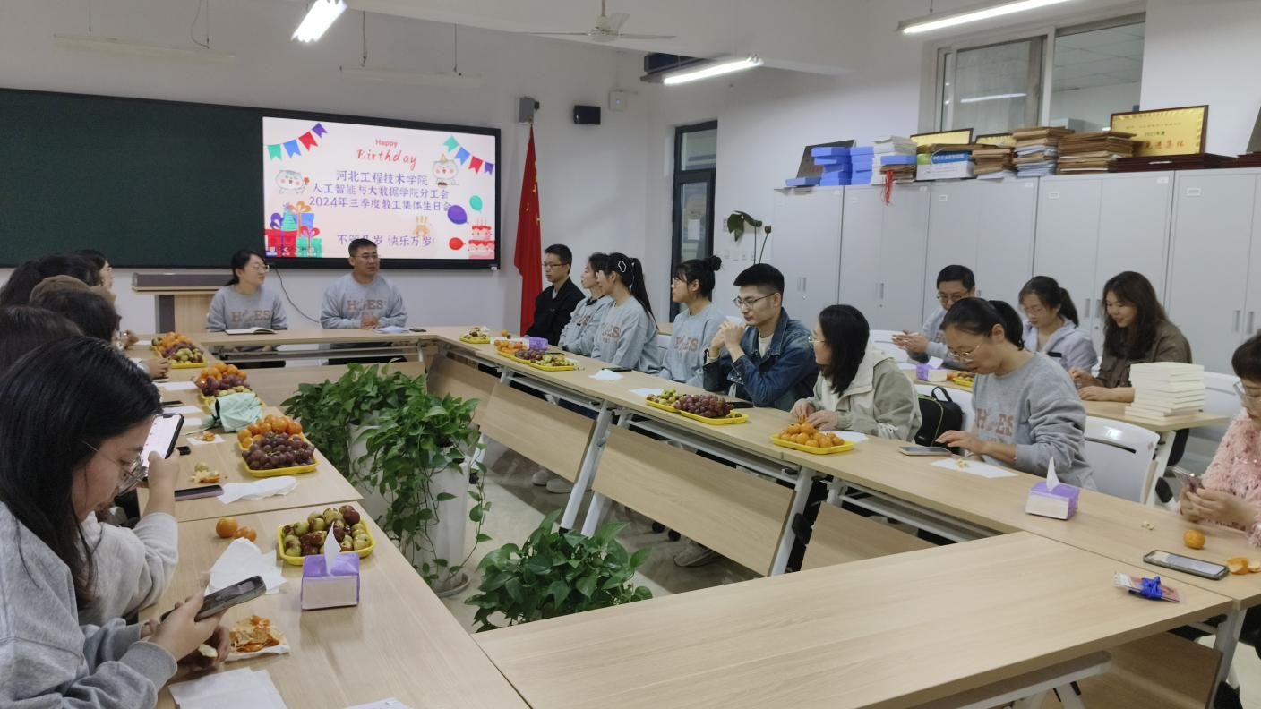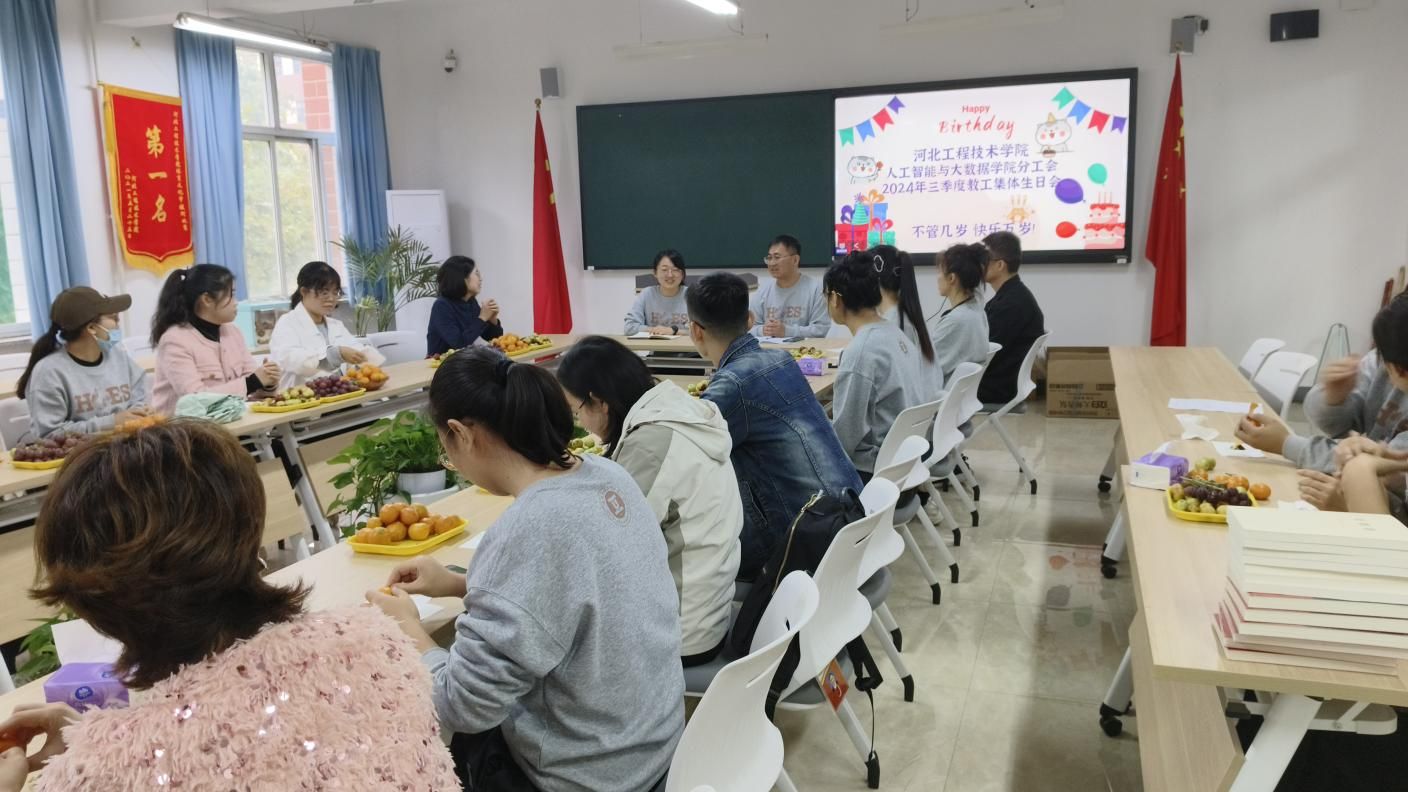 在这个秋意渐浓的金色季节里,人工智能与大数据学院于2024年10月17日在次教216举办了一场别开生面的教师集体生日会,旨在以温馨的方式,表达我院对全体教师辛勤耕耘与无私奉献的崇高敬意,同时进一步加深同事间的情感联系,营造更加和谐、积极的学院氛围。参与此次活动的有学校党委组织部部长李忆秋,我院党总支书记、学管副院长尹钧,教学副院长林海霞,学管办主任杨家腾及第三季度的寿星教师们。