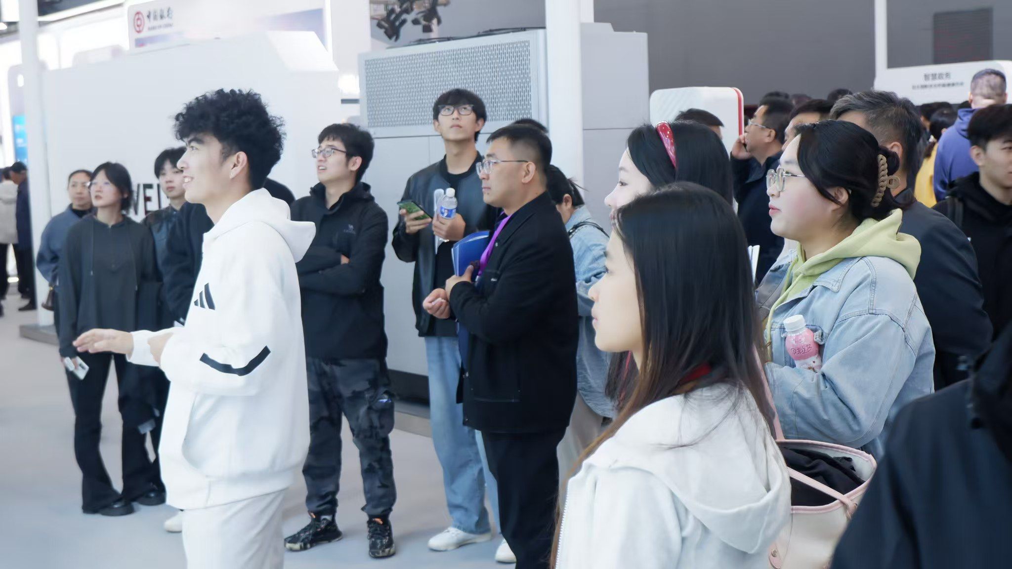 随后,学生们来到了八号馆——品牌馆。这里汇聚了众多国内外数字经济领域知名企业,集中展示了人工智能、行业通用大模型、低空经济、空天信息、智能装备与机器人等八大数字经济领域核心内容。特斯拉Cybercab、Robovan、人形机器人,星火4.0智能认知大模型,中电科卫星互联网、卫星通信,铁塔巡检无人机、巡控平台,旭阳数字巡检机器人等众多领域未来产品的展示,让学生们大开眼界,不禁感叹于科技进步的日新月异。