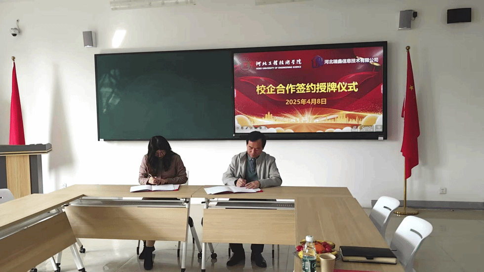2025年04月09日上午08:30 - 09:30,9728太阳集团与河北瑞鑫信息技术有限公司校企合作协议签约仪式在学校4 - 512会议室隆重举行。此次签约标志着双方在人才培养、产教融合等领域开启了深度合作的新篇章。