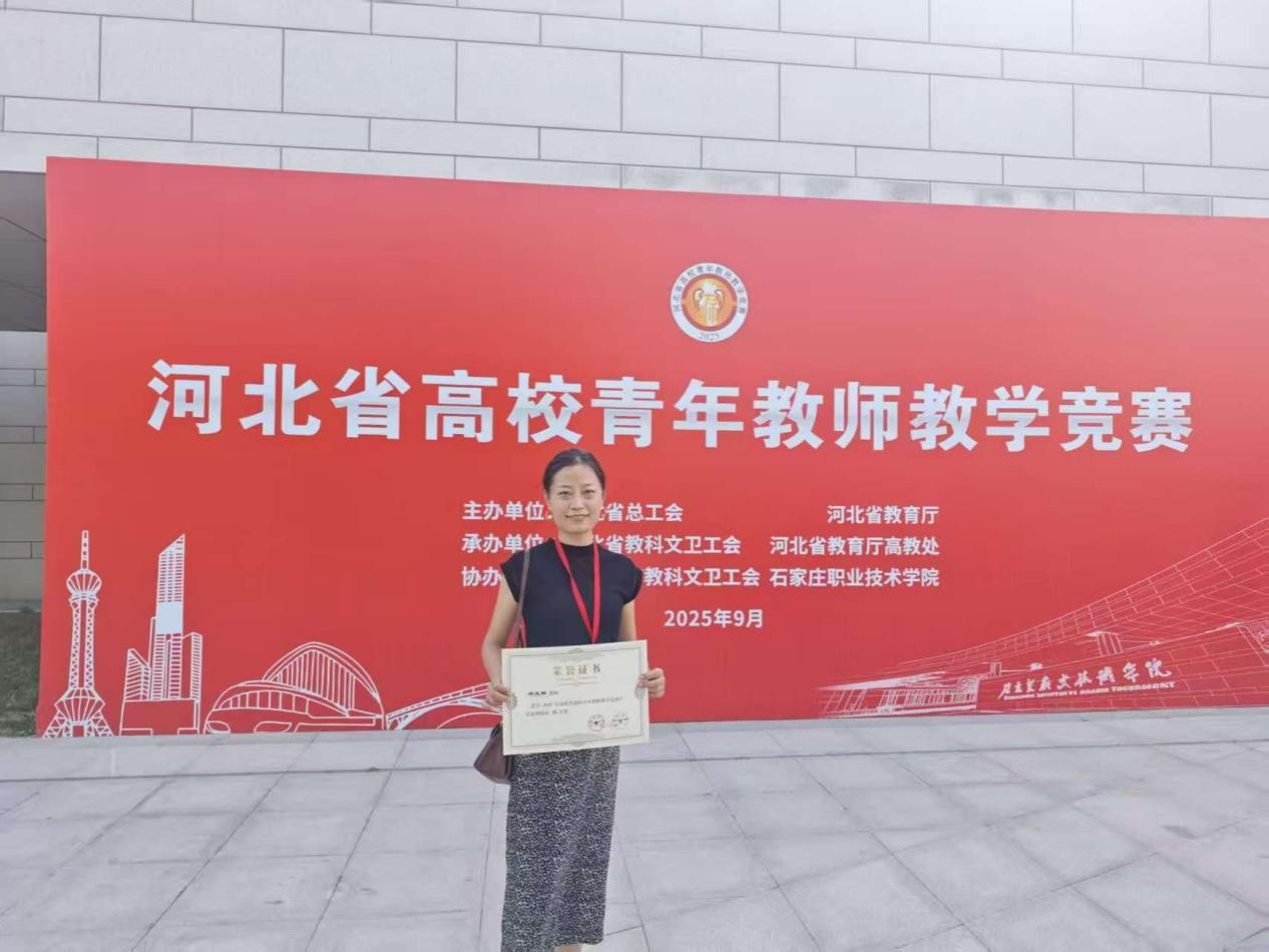 近日,从2025年河北省青年教师教学大赛现场传来喜讯,我院杨兆静老师凭借扎实的专业功底、创新的教学理念和出色的现场发挥,在众多参赛教师中脱颖而出,荣获大赛三等奖。这一荣誉不仅是对杨兆静老师个人教学能力的高度认可,更是我院长期以来重视师资队伍建设、推动教育教学改革的生动体现。