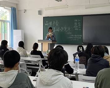 此次"品味书香,享阅读之乐"读书会分为三个部分:第一个部分为准备活动。通过观看课件与团支书讲解,使学生们具体了解此次活动的内容。学生们通过线上和线下两种方式去搜索资料,上网浏览名人名言,线下前往图书馆借阅自己想要分享的图书。学生自发借书,积极参与到活动中来;第二个部分为我行我展。 活动期间,学生们用自己搜寻到的书籍、精彩片段抄录,在读书会上分享自己的心得体会。活动期间学生们侃侃而谈,用诙谐幽默的语言介绍自己分享的书籍;有的用粉笔在黑板上写下精彩语段;有的深入分享自己的读书感受,让学生们增加了对于阅读的兴趣。既激发了学生们的主观能动性,又给学生们留下了深刻印象,引发了读书兴趣,每位同学都参与进来;第三部分为活动总结,围绕活动"品味书香,享阅读之乐"读书会初心,团支书总结了此次活动的主要内容,呼吁本班学生要多读书、读好书。