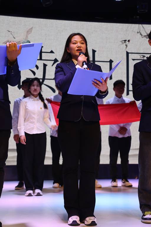 山河不倒,中国是历史长河的瑰宝;岁月长歌,中国是灿烂文明中的圣贤。2022级团支书们为我们带来诗朗诵《读中国》,让我们通过文字的力量感受中华之魂!他们的朗诵铿锵有力,气势恢宏,字里行间无不澎湃着对祖国的热爱。