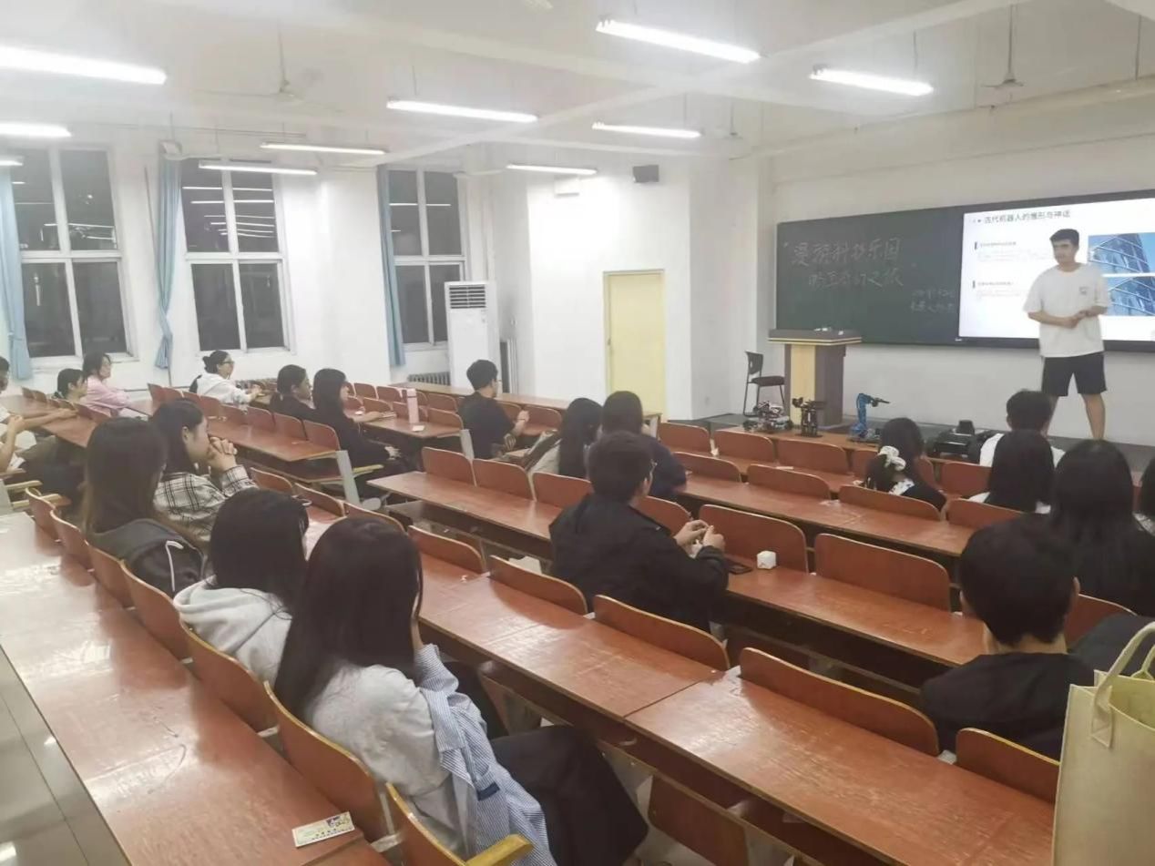 人工智能与大数据学院机器人协会于2024年9月24日晚七点十分在主教1-2举办“漫游科技乐园,畅享奇幻之旅”活动,由机器人协会副主席郝瑞鹏主持演讲。