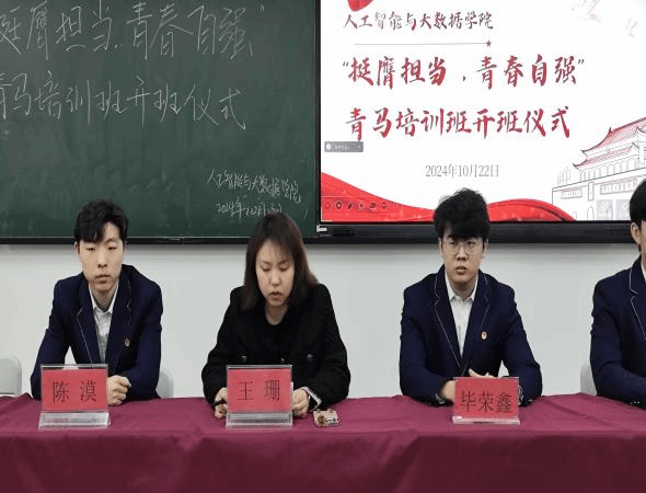 人工智能与大数据学院于2024年10月23日在主教1-1、主教1-2隆重举办第六期“挺膺担当,青春自强”青年马克思主义者培训班的开班仪式。此次培训班参与人员有人工智能与大数据学院团总支书记王珊,辅导员刘朋、罗棉心,团总支学生副书记陈漠、毕荣鑫,青马学校管理中心主任于仰昊、李家奇,全体青马辅导员监督员以及全体青马工程培训班学员。