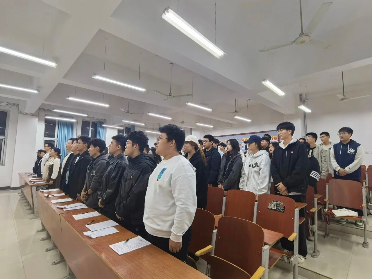 首先,为了检验大家对团课知识的掌握情况,赵晨曦随机抽查了部分学员背诵“三会两制一课”和入团誓词的情况,学员们表现积极,背诵流畅。接着,全体学员齐唱团歌,歌声嘹亮,展现了青年学子的蓬勃朝气和昂扬斗志。