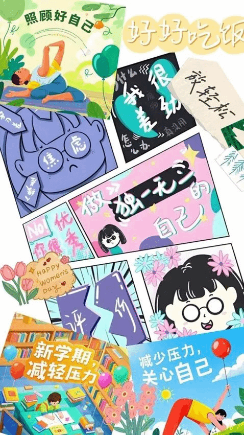 “新学期、新气象”篇——学生们围绕“新起点”“积极氛围”“美好期待”等元素制作了很多让人眼前一亮的作品。