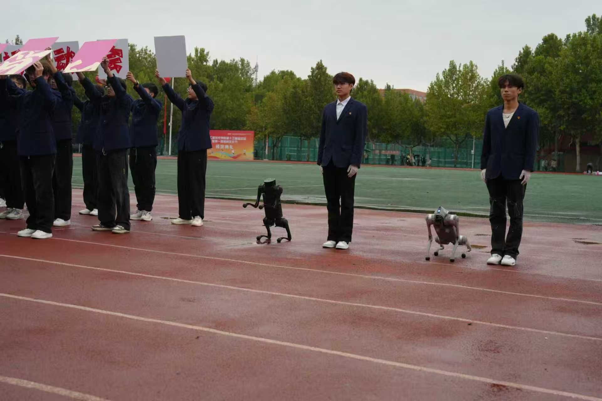 太阳集团网tyc9728的方阵以科技之名踏浪而来!方阵成员们步伐整齐,手持道具,随行进节奏拼出亮眼字样,将专业特色化作流动的视觉符号。空中,无人机飞旋空中放出条幅,与地面口号交相辉映。萌态与力量兼具的机器狗紧随其中,与看台观众打招呼,尽显学子的创新活力与锐不可当的精神风貌。