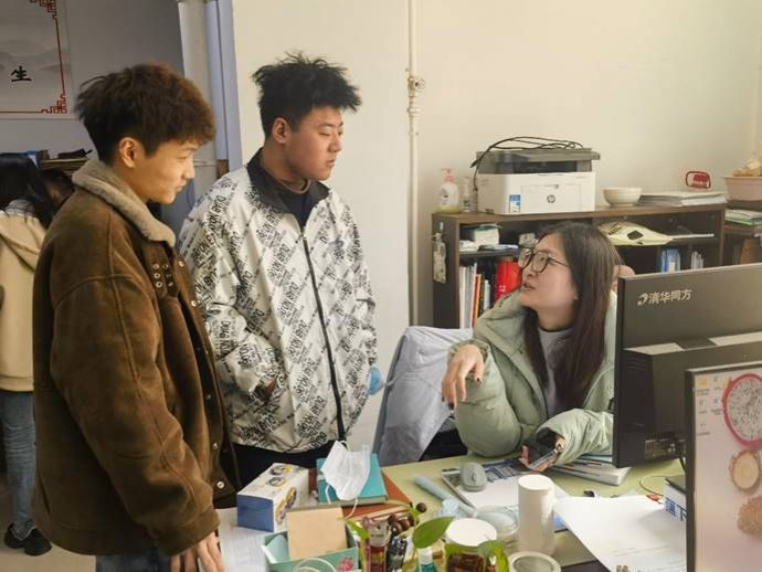 在辅导员办公室中我们可以看到多种相处状态,辅导员老师与学生们唠唠家常,谈谈理想,为学生们答疑解惑。无论严肃还是轻松,都是辅导员与学生的“秘密交流”。辅导员工作虽然繁忙,但对待学生从不会敷衍了事,认真回答学生的每一个问题,细心整理学生的每一份数据,从不懈怠。