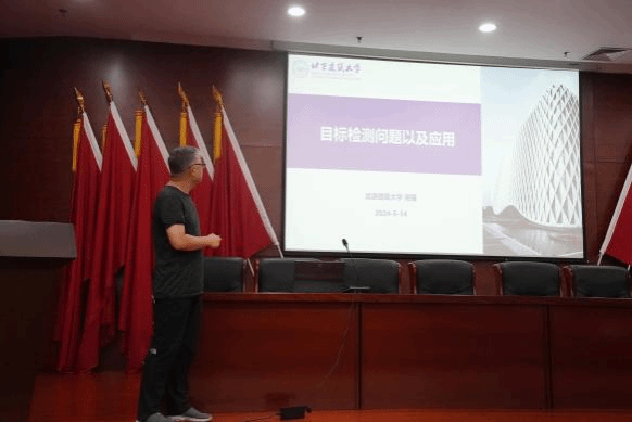 何强,北京建筑大学教授、硕士生导师,理学院数学与数据科学系副主任、大数据理论与技术研究所负责人,中国人工智能学会知识工程与分布智能专委会委员,香港理工大学、日本信州大学访问学者。此次报告由人工智能与大数据学院教学副院长林海霞主持,部分教师与人工智能专业学生近400人参加,主题为:“目标检测问题以及应用”。