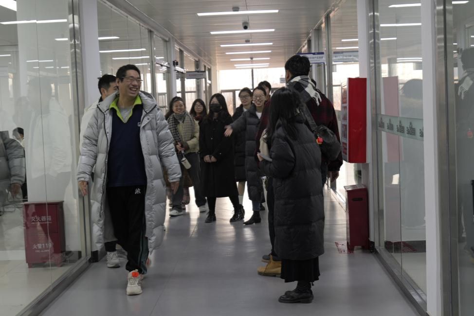 活动当天,学院以开放的姿态迎接泰国皇家理工大学的学生。在学院领导的陪同下,泰国学生首先参观了学院的人工智能实验室。在这里,教师精心准备了一系列展示,包括城市智慧沙盘和月球小车等前沿科技设备。并在参观过程中,利用同步翻译设备为泰国学生详细解说技术原理和应用。