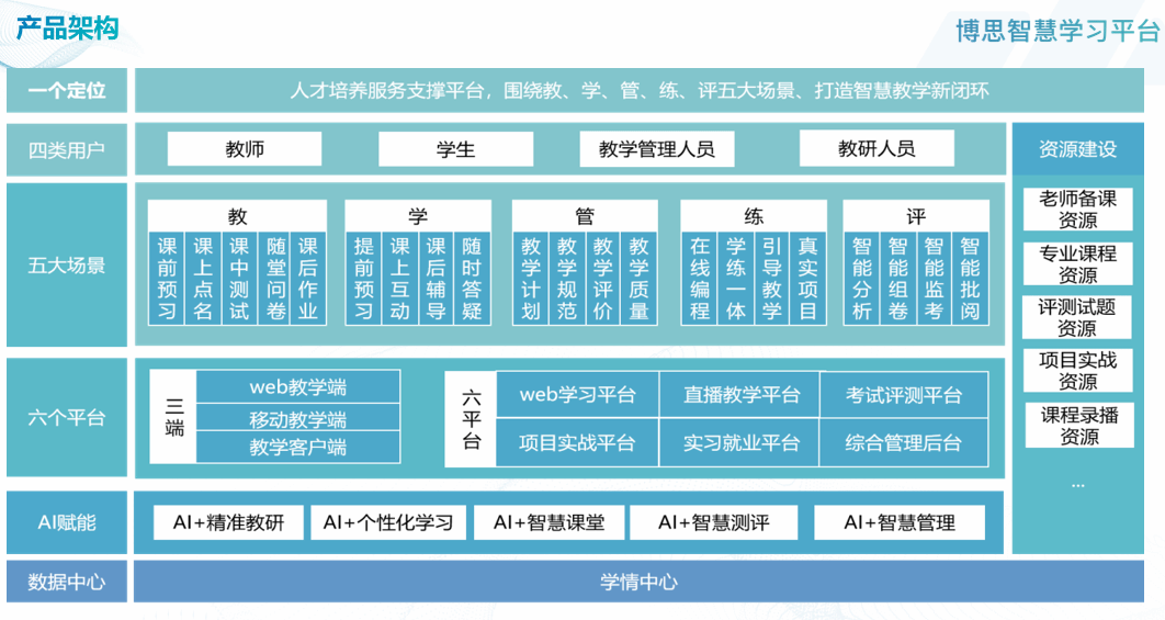 9728太阳集团与科大讯飞两大资源平台,实时关注最新技术动向和需求,随时跟进课程设计内容,及时更新课程模块,保证课程的适用性、前瞻性、先进性和实用性。共同围绕“教、学、管、练、测”全生命周期教学场景,实现个性化学习,精准化教学,智慧化管理,打造全新的智慧教学生态闭环。